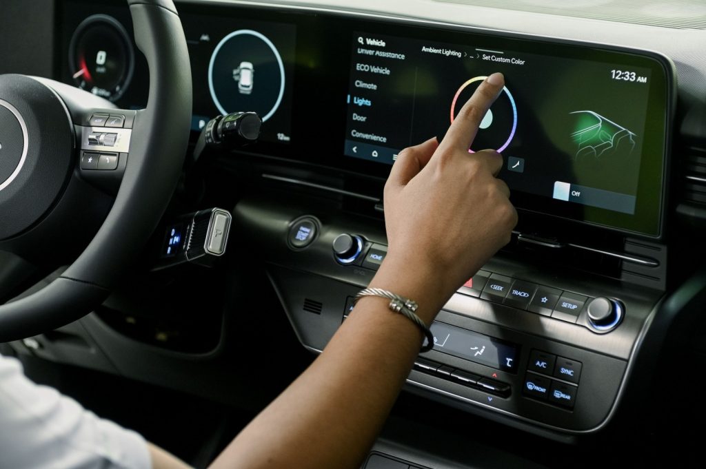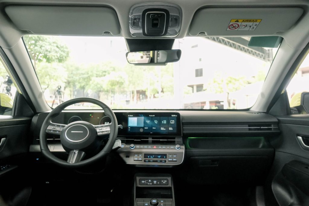Meanwhile, the Kona presents a different notion of clean layout. It has a panoramic screen angled towards the driver that houses twin 12.3-inch screens for the gauge cluster and infotainment system. The center console seems to be an empty space with the huge cubby hole in the middle that doubles as the cup holder. The shifter has been moved to the right side of the steering wheel, leading to an unobstructed Wireless Charger, USB Ports, Drive Mode knob, and Electronic Parking Brake.