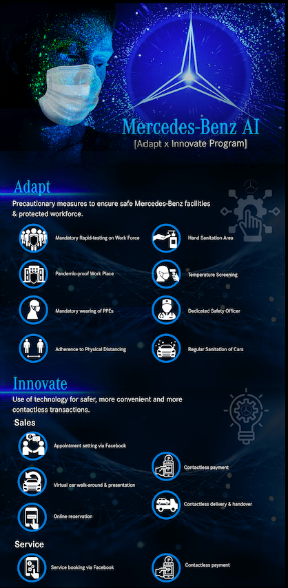 In line with this, Mercedes-Benz implements the A.I. program that ensures both pandemic-proof environment in Mercedes dealerships, as well as solutions to ensure minimal contact on sales and aftersales transactions.