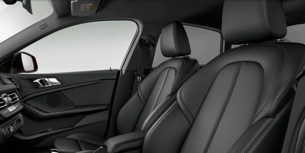 In the BMW 2 Series 218i Gran Coupé Sport, Sensatec upholstery ensures comfort and durability, with the Sport front seats being electronically adjustable with a memory function for the driver. Interior trim strips are finished in “Illuminated Berlin” design, and a Sport steering wheel allows access to many vehicular functions.