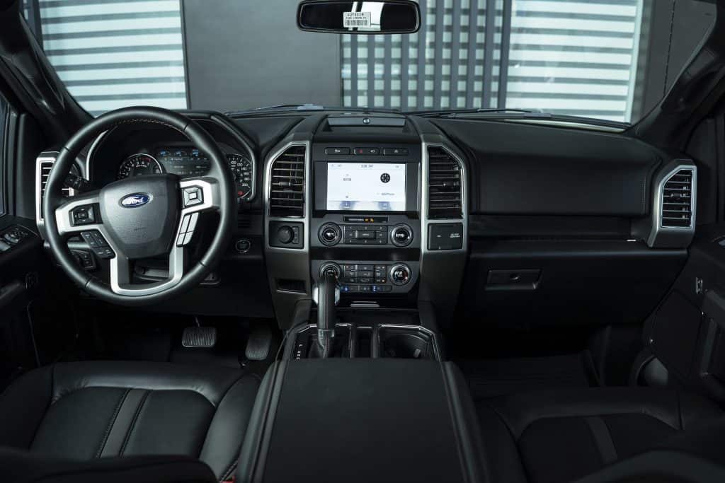 Open the F-150 Platinum’s doors and the powered stepboard will make going in a lot easier. Inside, the F-150 models look almost the same until you take a closer look at the details. The Platinum has leather-wrapped shift knob and center console lid, aluminum accents all over, black ash wood trim and even the floor mats are more premium.