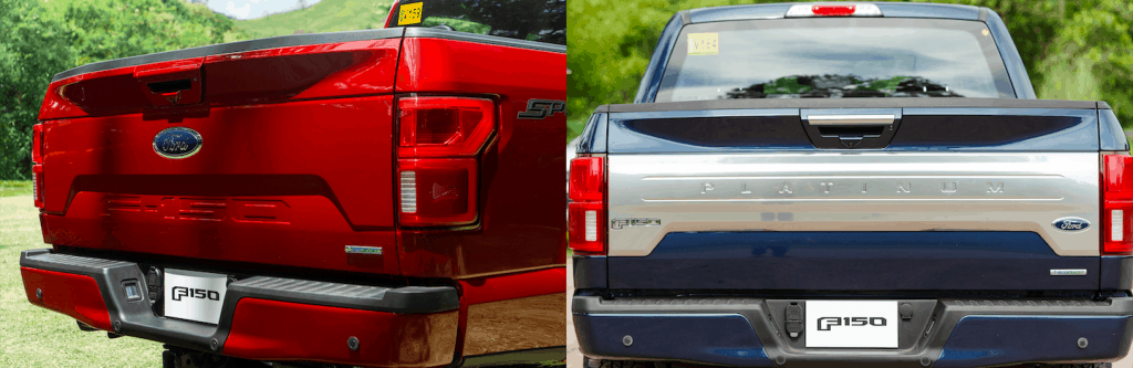 The narrative changes at the rear because it’s where the Platinum flaunts the most. It has an aluminum-ish tailgate applique where the word “Platinum” is stamped in all caps, across the width of the panel. No way the driver behind you will miss it. It also helps that it has tailgate step and tailgate lift assist. Meanwhile, the Lariat model had to make do with a ‘Sport’ decal at the rear quarter right panel and “F-150” stamped on the tailgate itself.