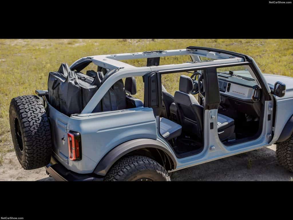 The four-door Bronco with its roof on, partly off, and full off (including doors)
