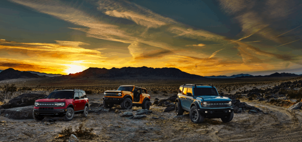 The Bronco family photo–2 door, 4-door and Bronco Sport
