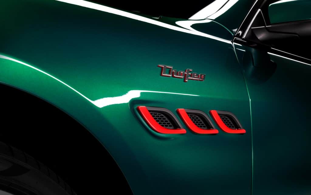 To highlight Maserati’s all-Italian identity, the colors chosen for the Trofeo collection launch are those of the country’s tri-colore: green for Quattroporte, white for Levante and red for Ghibli, which combine with the burnished chrome-work and glossy red trims for a particularly aggressive and elegant look.