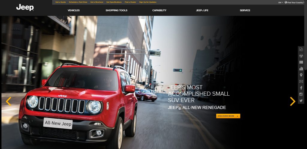 Jeep’s website is almost perfect. The homepage will greet you with dramatic hi-res photos and despite the dual layer top menu that becomes three-layer once you go to a car page, it doesn’t look cramped. The car page is segmented and the layout is very pleasing.