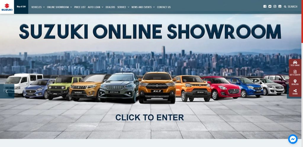 Suzuki’s website looks dated but makes for a good case of function over form — drop-down menu on hover, segmented single car page that has everything you need, no extra page to load. These are all strong points that ease the browsing experience.
