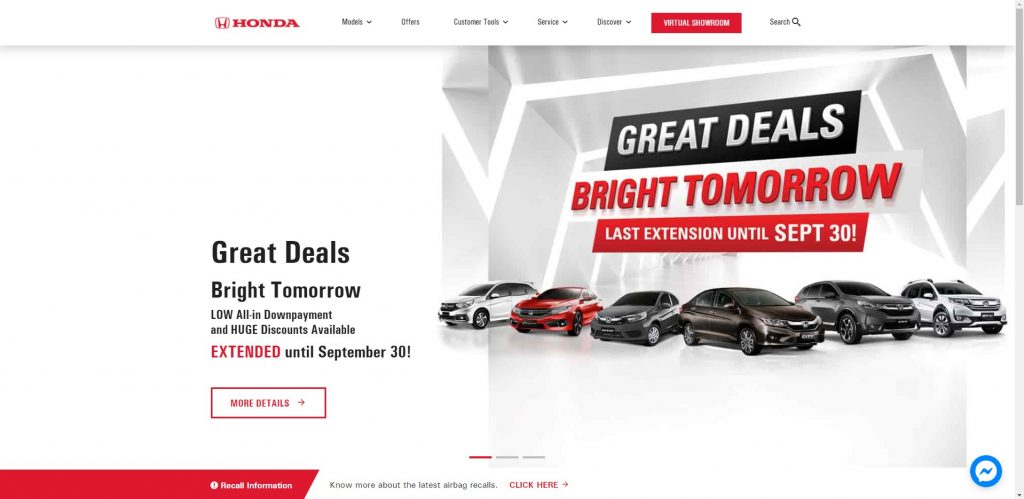 Look past that and it’s very tempting to buy a Honda straight from the site. Information is complete – with full specs for every variant, and a Facebook Messenger widget should you need to talk to an agent. The digital showroom is simple but will guide you from model to variant to payment schemes. There’s also a Loan Calculator that’s also accessible from the car pages to let you see a preview of the amortization and auto loan links to their partner banks.