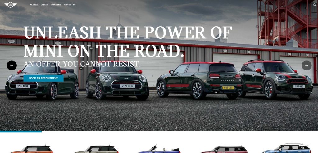 The distinct visual branding of Mini that you can see in their brochures translated well into their website, making for a really distinct look. Their car pages have hi-res videos and images, interactive color swatches, and easy flow of information for the overview. However if you wish to go in-depth between the trims, it will be difficult since the full specs are not readily available.
