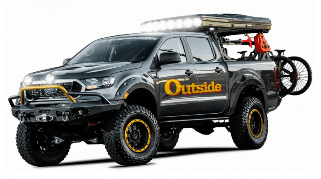 It isn’t just the Bronco that got the aftermarket attention at the 2021 SEMA Show. Ford also gives the American Ranger, in its off-road-ready Tremor trim, more guns for tougher excursions. The Attitude Performance Outside Magazine Ranger Tremor comes with auxiliary lighting, as well as a six-inch suspension lift and a Watergen atmospheric water generation system that creates drinking water from the humidity in the air.