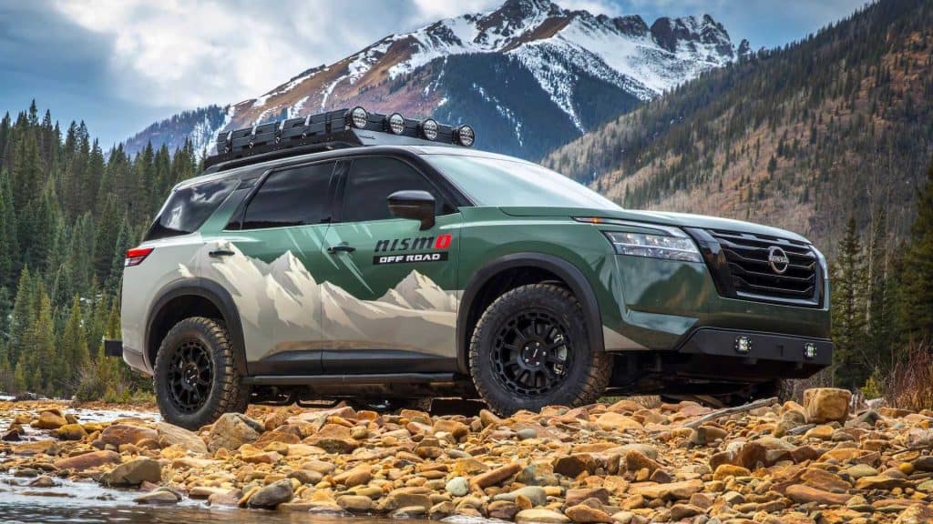 Pegged as an adventure-ready family vehicle, the Project Overland Pathfinder comes with a number of special modifications, such as a prototype Nismo Off Road 2-inch lift kit featuring custom Bilstein-sourced high-capacity monotube gas-pressurized shocks. The vehicle rides on custom 18×8-inch Nismo Off Road wheels mounted with Maxxis RAZR AT tires.