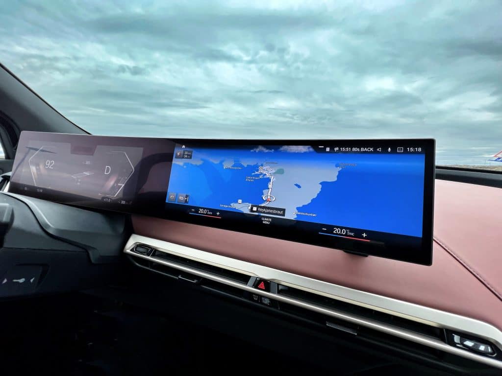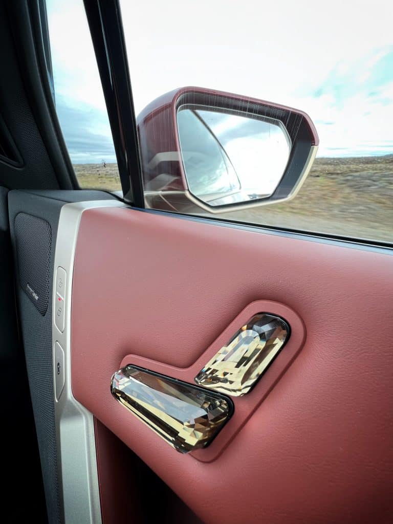 Let’s talk about the design language. It’s definitely an evolution of classic BMW styling. The car as a whole has a monolithic character, as if hewn from a solid block but with a focus on maintaining a low coefficient of drag. The wonderfully aggressive, slim LED headlights and matching taillights are eye-catching…as is the controversial grill. Surprisingly, it quickly grows on you. With no need to actually funnel cool air in, it’s more a flat panel than an actual grill that houses sensitive cameras, radar and other sensors, taking the safety and overall driving experience of the iX to the next level. Added tech is the polyurethane coating which makes it self-healing. Small scratches from pebbles and road grit disappear under the hot sun. This is definitely not “classic BMW styling” nor should it be. It’s the next step and the natural evolution. A peek at the future of BMW.