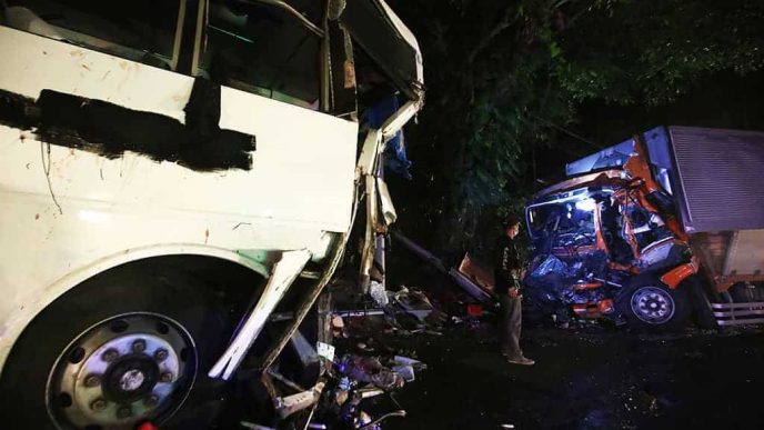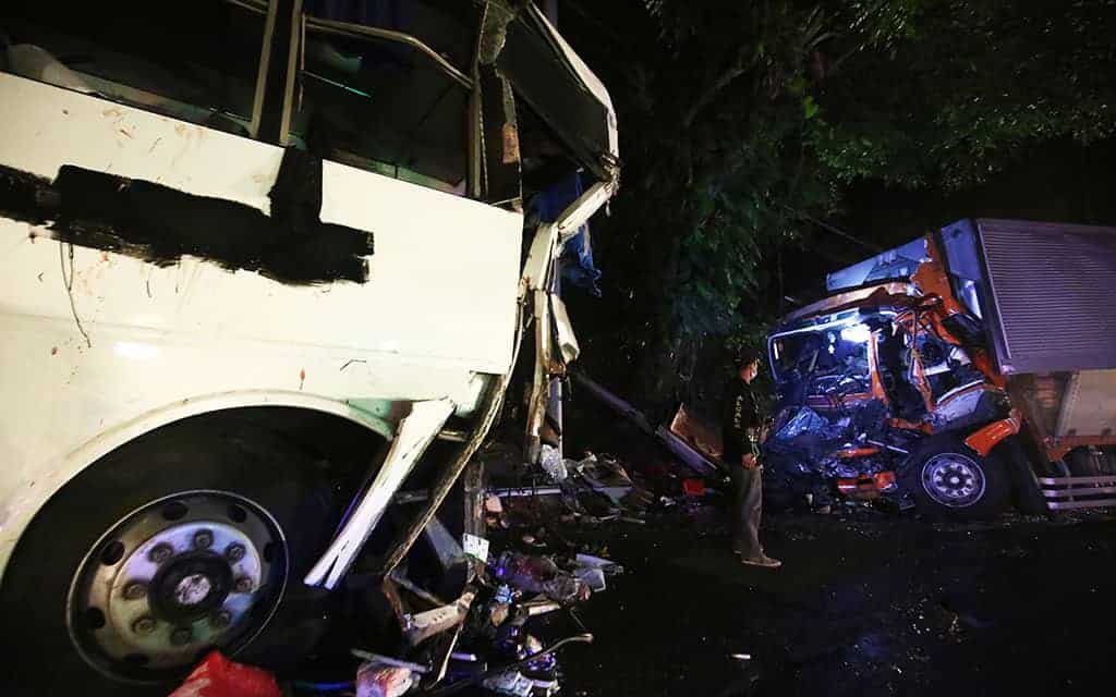 Three persons were dead while 68 others sustained injuries following a collision between a bus and a truck in Atimonan, Quezon on Monday.