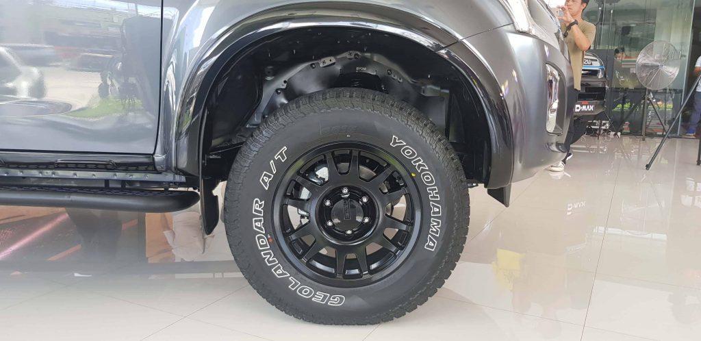The newest offering of Isuzu sports a new and aggressive look infused with a series of premium features such as monotube nitrogen-charged performance shock absorbers, specifically designed for difficult terrain, paired with Yokohama Geolandar GO15 tires with black alloy wheels for better handling and traction.