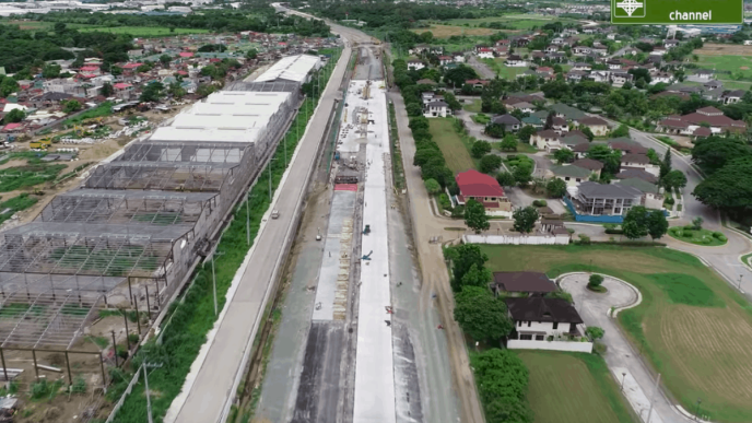 The drone footage shows toll plazas are being constructed along Mamplasan and the interchange exit towards Sta. Rosa-Tagaytay Road.