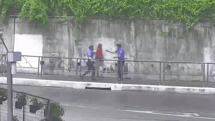 “We got a report na may taong grasang namamato sa (We got a report that there was a vagrant hurling stones from the) Ortigas Flyover. So when we spotted in our CCTV we immediately directed our enforcer where to pick him up. Captured,” Nebrija declared.