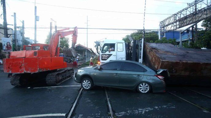 A back hoe was dispatched later to move the barge. PNR operations resumed more than half an hour after the barge was returned to the truck’s cargo bed around 6:30 a.m.