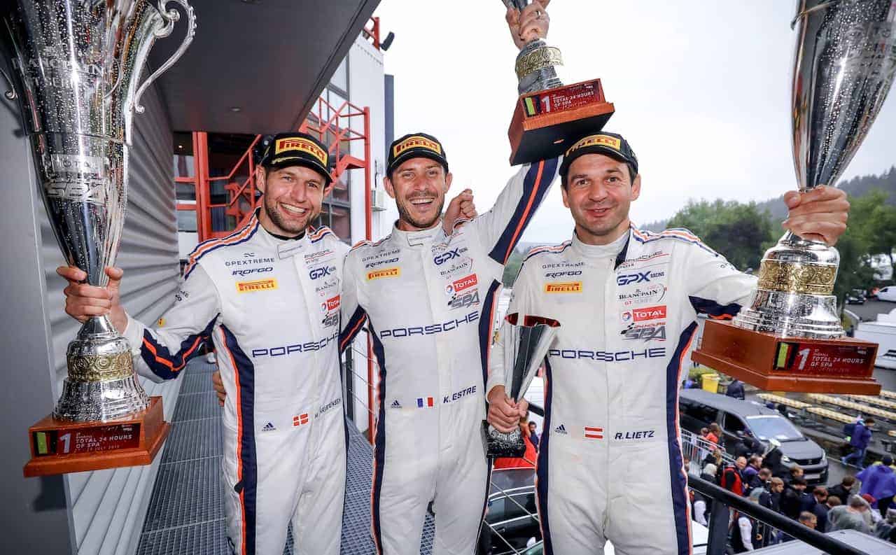 With a strong effort from its teams, Porsche won the 24 Hours of Spa. The GPX Racing Porsche 911 GT3 R crewed by the current FIA WEC Sportscar World Champions Kévin Estre, Michael Christensen, and Austria’s Richard Lietz finished first at the Belgian long distance classic after 363 laps, securing Porsche the seventh overall success from the most important GT3 event. The German marque beat fierce rivals Mercedes-AMG and Audi to climb the top step of the podium and capture a one-two finish in the world’s toughest GT race.
