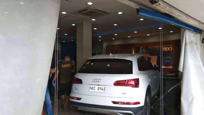 Initial investigation revealed that the driver, identified as former Marilao Mayor Epifanio, Guillermo, 83, was attempting to park his white Audi Q5 (NBC 8943) around 10 a.m. in front of a Banco de Oro branch along MacArthur Highway in Barangay Abangan Norte when it accidentally crashed into the bank.