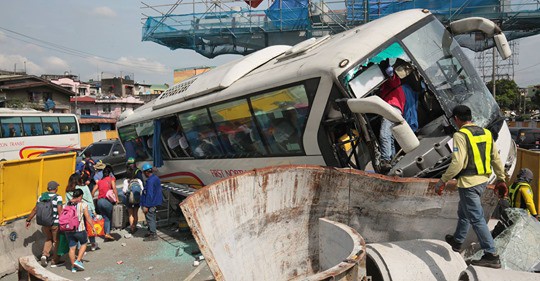 According to city police chief Col. Noel Flores, the Manila-bound First North Luzon bus crashed into the steel barrier of the Skyway project at 9 a.m.