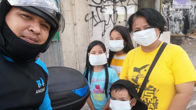 According to a Facebook post by Jin Dinglasan, some Angkas bikers were carrying food and medical supplies such as water, face masks, and biscuits.