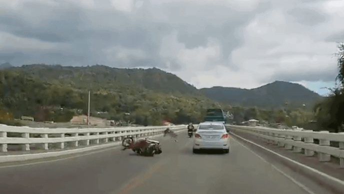The accident occurred when two people on board a motorcycle crashed against an oncoming rider after passing through the middle of the opposite lane.