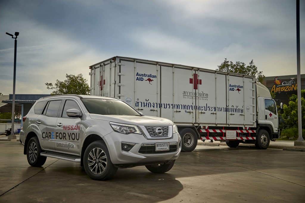 In Thailand, partnering with the Red Cross, Nissan has started a caravan project to transport medical supplies and food to local communities, with Nissan employees participating as drivers.