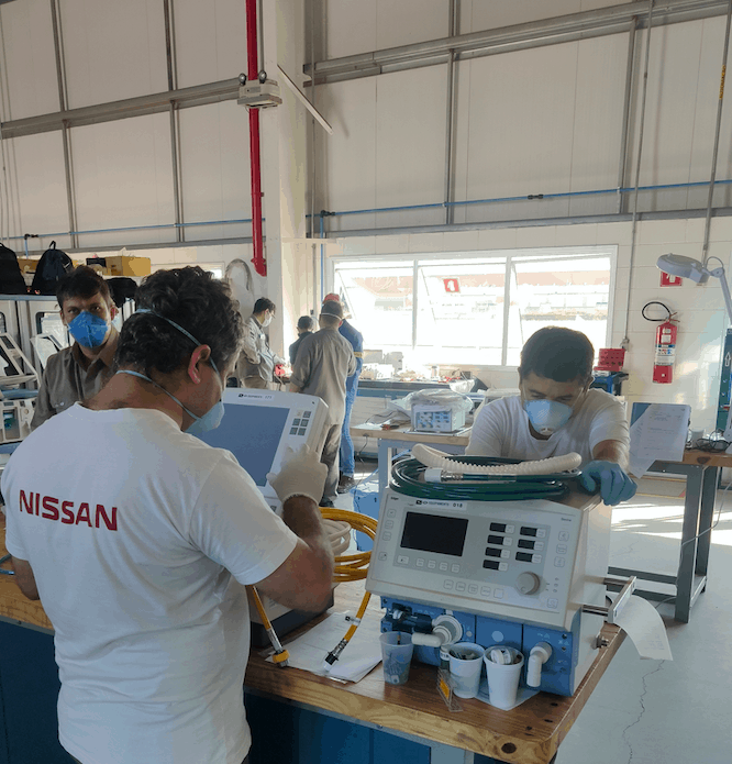 At Nissan’s powertrain plant in Barcelona, Spain, the company has cooperated with affiliated engineering firms and medical institutions to make ventilators for treating COVID-19 patients. In Brazil, engineers at the Resende Plant have helped repair ventilators through a partnership with other carmakers.