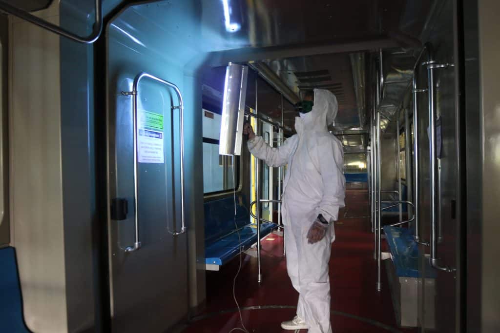 The LRMC has upgraded its disinfection equipment with Ultraviolet C (UVC) technology developed by the University of the Philippines Diliman’s National Engineering Center (UPNEC). A prototype disinfection chamber fitted with UVC lamps is currently being used to disinfect personal protective equipment (PPE) used by station staff and employees. Handheld devices and 360˚ UVC lamps are being used to complement chemical disinfection inside the trains once they reach end stations in Roosevelt and Baclaran every five-minute intervals, and also during nightly sanitation activities at the LRT-1 depot facility.