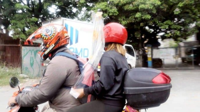 Motorcycle backriding is currently allowed for couples who are living in the same household. In order for them to be allowed to ride together, plastic barriers or shields must be installed in a bid to curb the spread of the dreaded virus.
