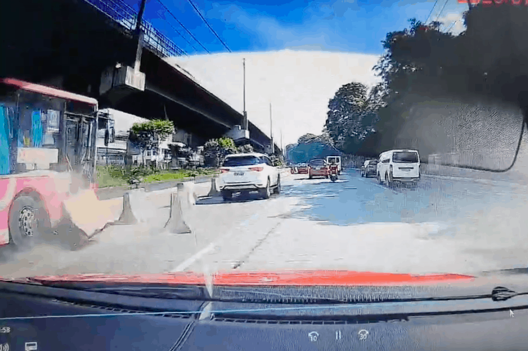 In a dashcam video, an MSJ Tours bus (U1 L782) is seen knocking over multiple concrete barriers as it speeds through the EDSA busway.