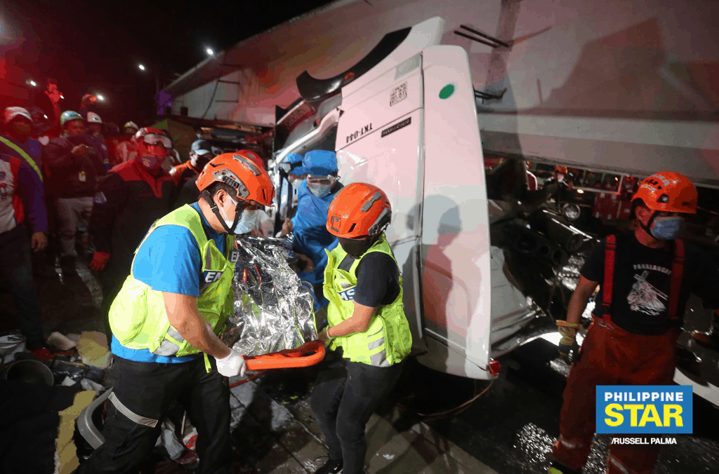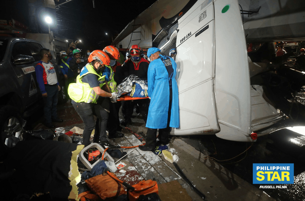 Rescue personnel had to extract the body of the driver inside the mangled vehicle.