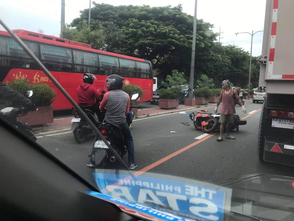 An aftermath of a motorcycle accident was captured by a motorist on the northbound lane of Buendia Flyover along Roxas Boulevard on Wednesday morning.