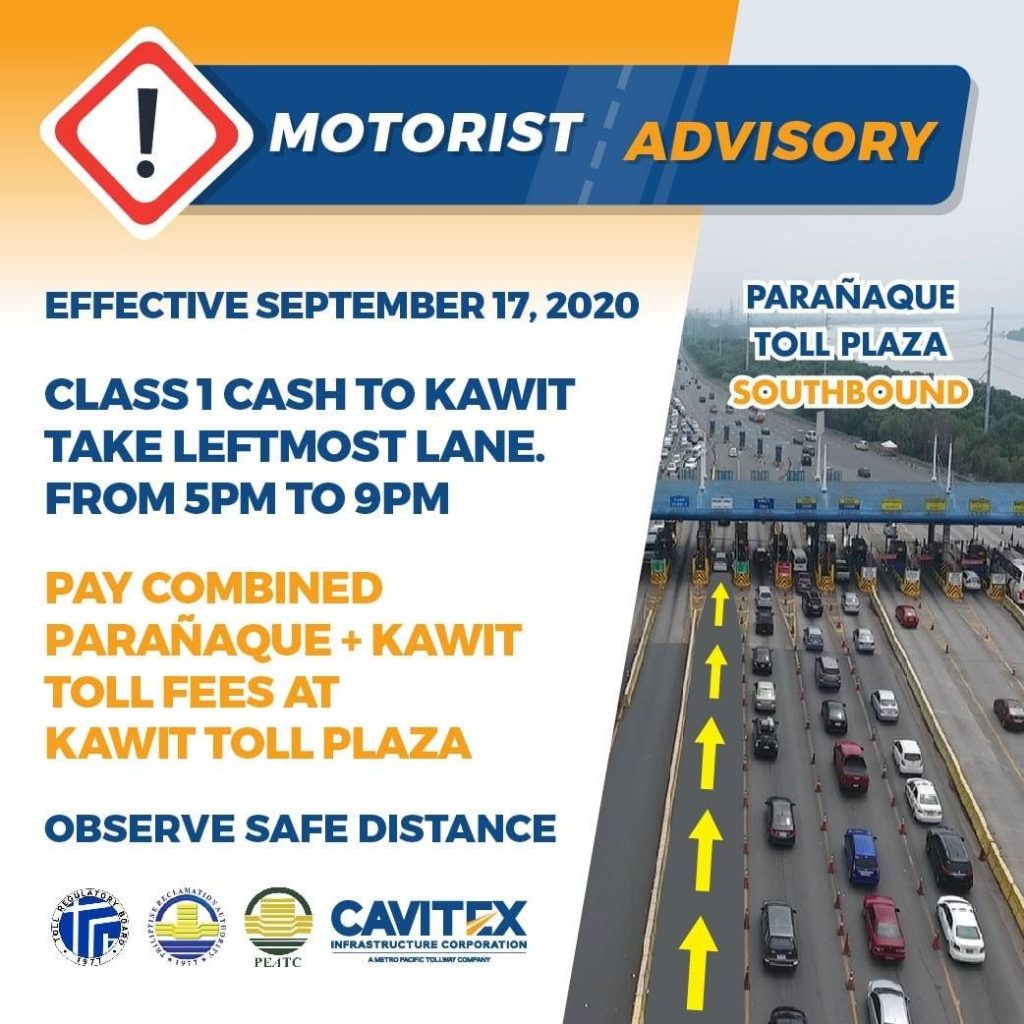 The Cavitex Infrastructure Corporation (CIC) said that cash-paying motorists using the ‘Pass Through’ lane heading towards Kawit City will pay a total of P89 at the Kawit Toll Plaza.