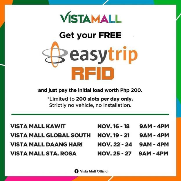 Have your EasyTrip RFID installed at Vista Mall from November 16-27