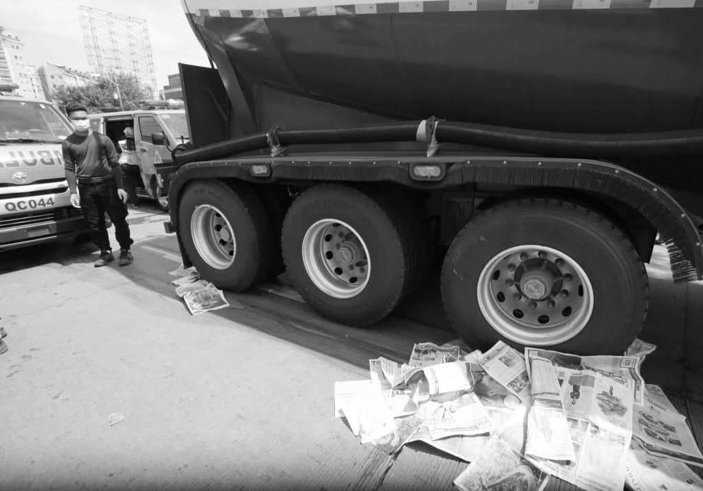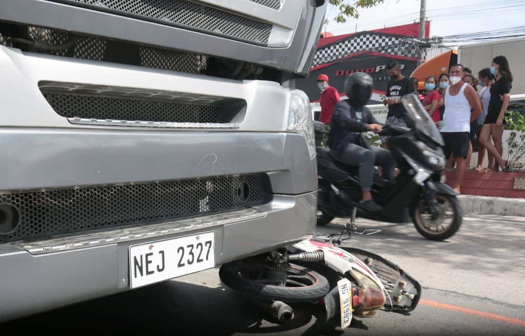 According to the initial report, the still unidentified motorist was riding her motorcycle with her daughter when a truck hit them along Mindanao Avenue.