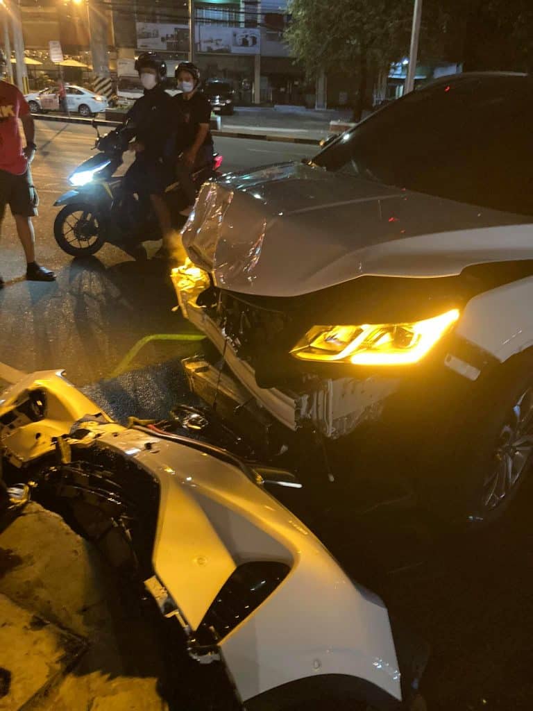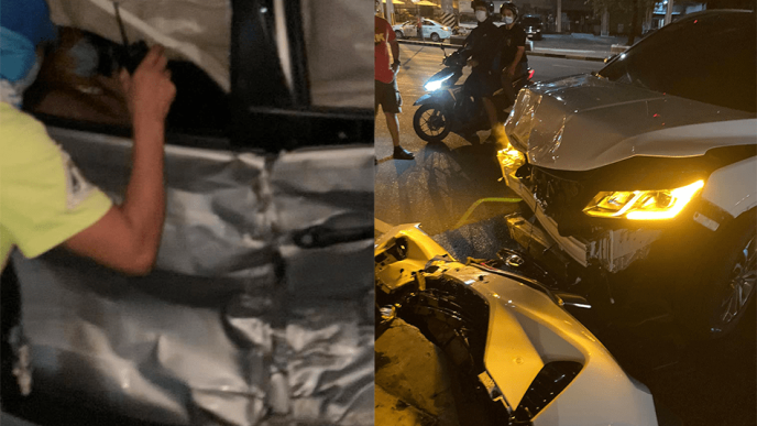 According to one of the witnesses, the Geely Coolray crashed into a Toyota Vios after the former allegedly tried to beat the red light at the intersection of Quezon and West Avenues.