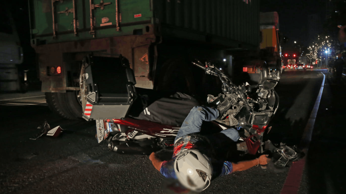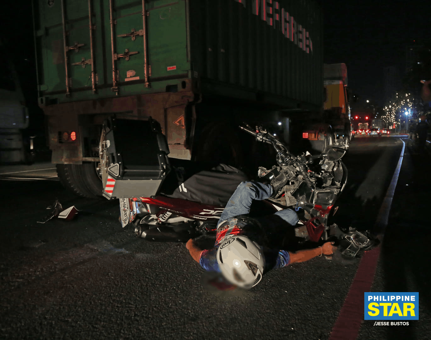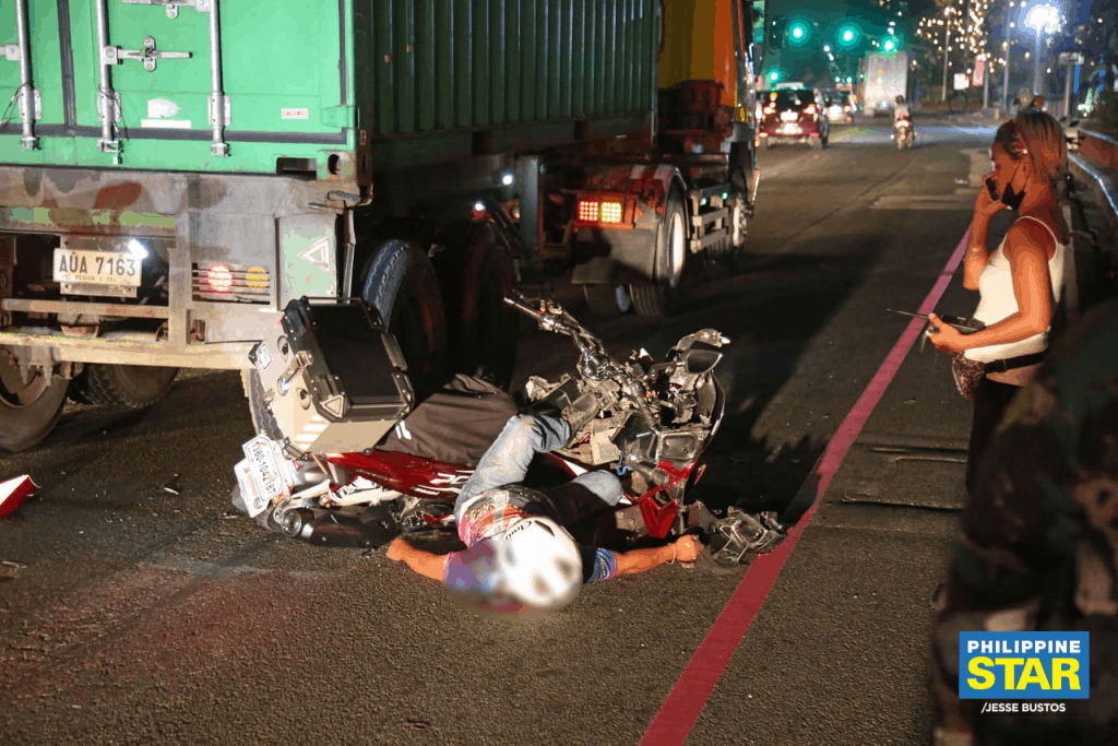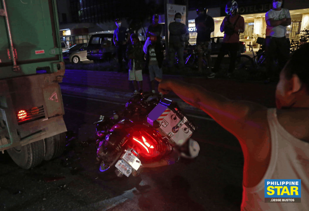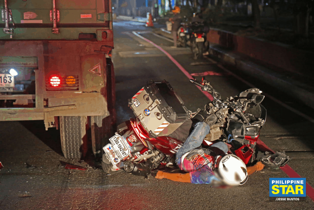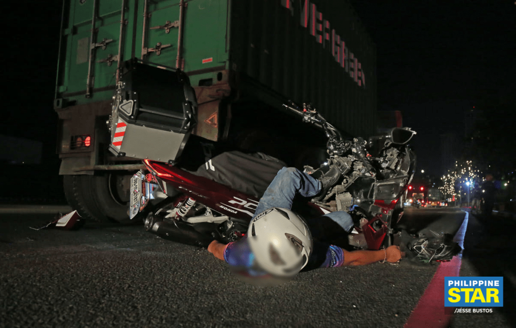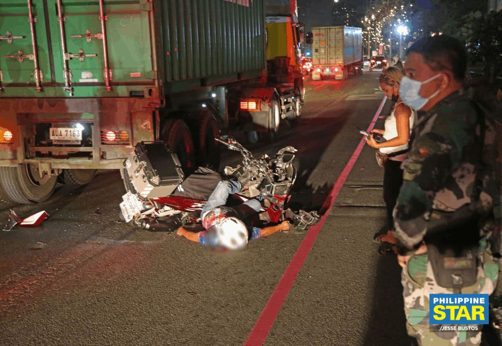 The mishap happened after the still unidentified rider crashed into the rear of a truck along Roxas Boulevard near the Cultural Center of the Philippines.