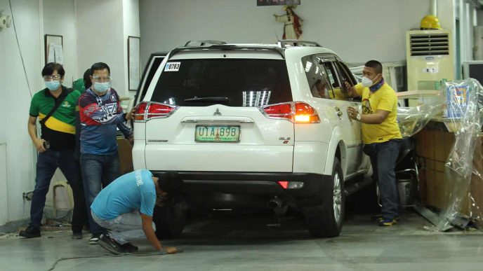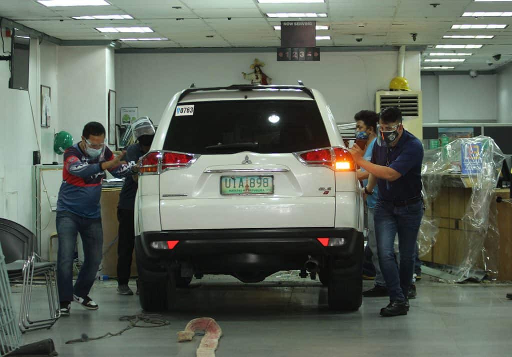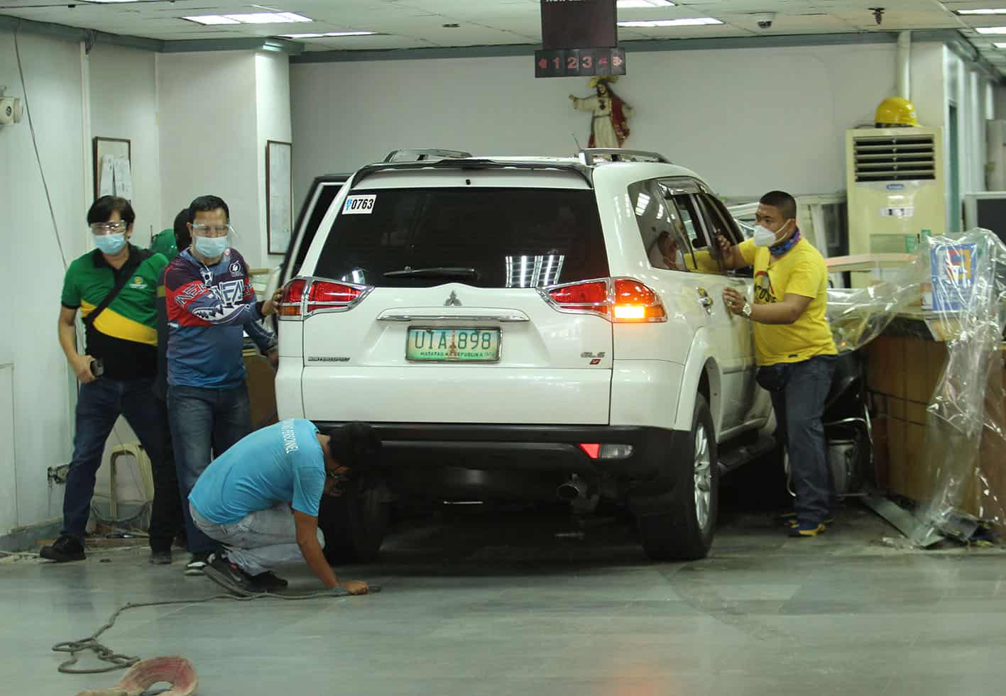 According to a report by the Quezon City Police District, the incident occurred when the driver, identified as Esther Peralta, “accidentally accelerated the engine” while maneuvering her white Mitsubishi Montero at the parking space of Land Bank EDSA Congressional Branch.