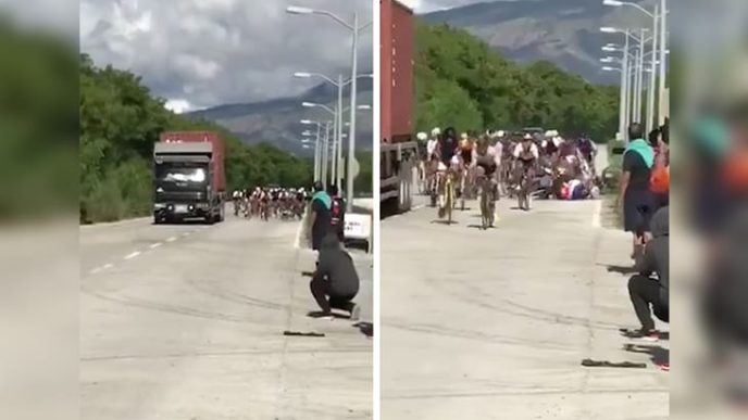 In a video posted on Facebook, a fleet of cyclists were seen attempting to overtake a truck near the New Container Terminal. One 14-year-old biker, however, hesitates and crashes, causing other riders to get derailed as well.