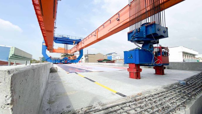 Civil works for the viaduct made use of a special engineering method, a first for the Philippines, which has allowed for faster execution causing minimal effect on the ground-level traffic. In September 2020, the first pi-girder was installed using the above-ground launcher. Since then, pi-girders continued to be installed every 1-2 days. A total of 203 pi-girders were installed using the above-ground launcher and on-ground equipment such as straddle carriers and cranes.