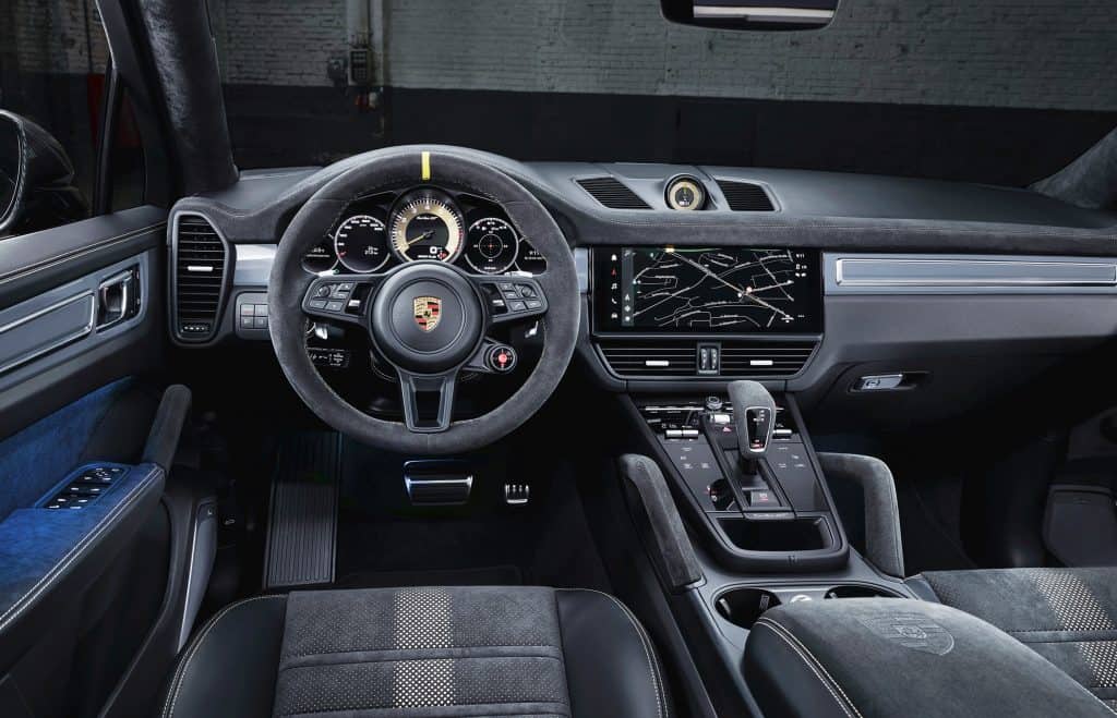 Complementing the sporty character of the Porsche Cayenne Turbo GT are premium standard equipment. Among these are 18-way Adaptive Sports Seats in front, a sport rear seat system, and a multifunction sports steering wheel. Also fitted to the model is the latest Porsche Communication Management (PCM) system that has a new user interface and operating logic. It is fully compatible with Apple CarPlay and also allows for in-depth integration of Apple Music and Apple Podcasts. In addition, the infotainment system now also includes Android Auto.