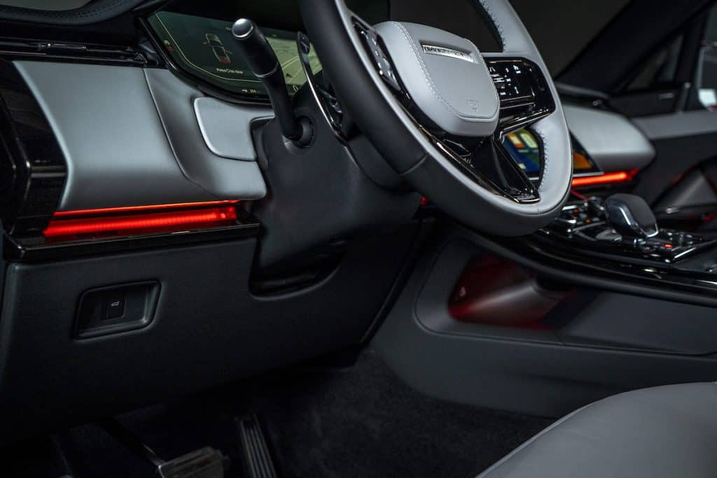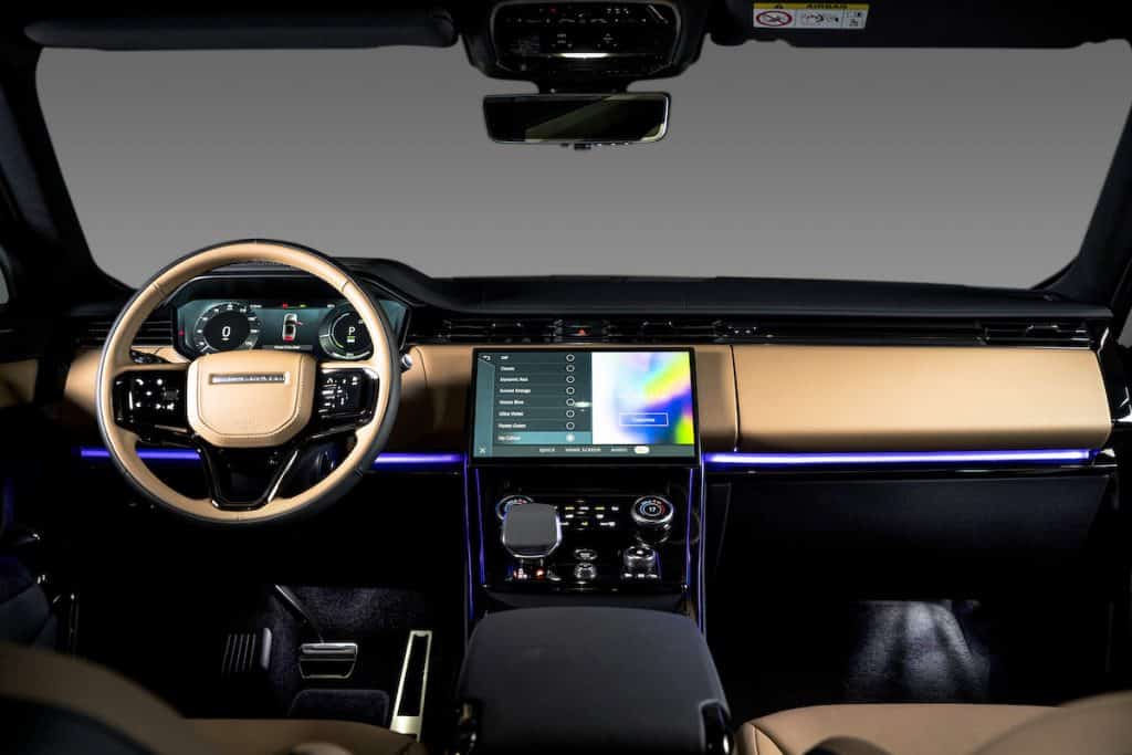 The interior of the new Range Rover Sport is no less impressive, featuring plush, leather-clad surfaces, 22-way power-adjustable front seats that provide ventilation, heating, and a massage function, as well as an automatic climate control system that employs PM2.5 filtration and the “nanoe” X technology. An active noise cancellation system further enhances the luxurious feel of the interior.
