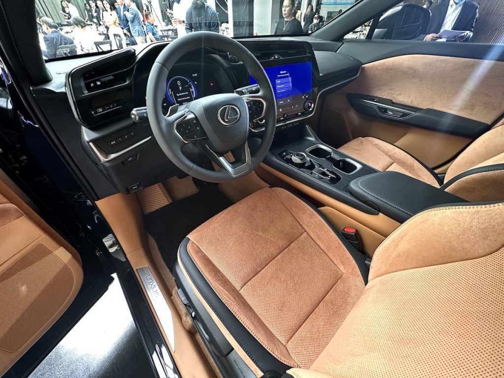 The RZ is loaded with technology, starting with a 14-inch infotainment touchscreen with wireless Apple CarPlay and Android Auto, the “Hey Lexus” on-board assistant, and a bespoke 10-speaker Mark Levinson Premium Surround Sound system. The EV also has an 8-inch digital instrument cluster and a color heads-up display. The Lexus Safety System provides Advanced Driver Assist System (ADAS) system functions, such as Dynamic Radar Cruise Control (DRCC), Pre-Collision System (PCS), and Lane Tracing Assist (DRCC), among others. The Full Park Assist feature can park the vehicle in an open parking space without any driver’s input.
