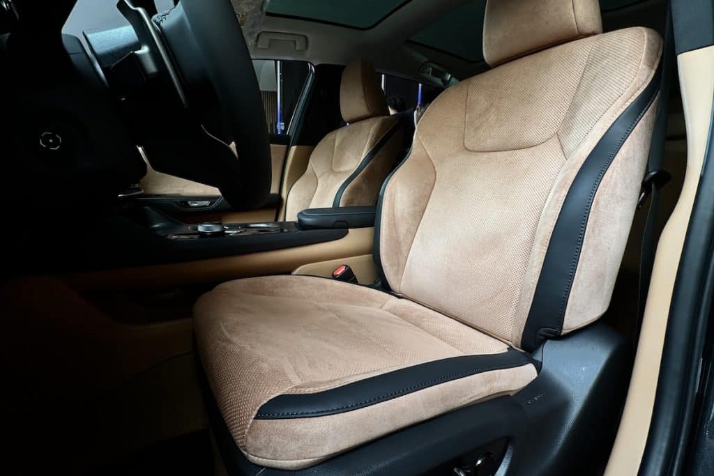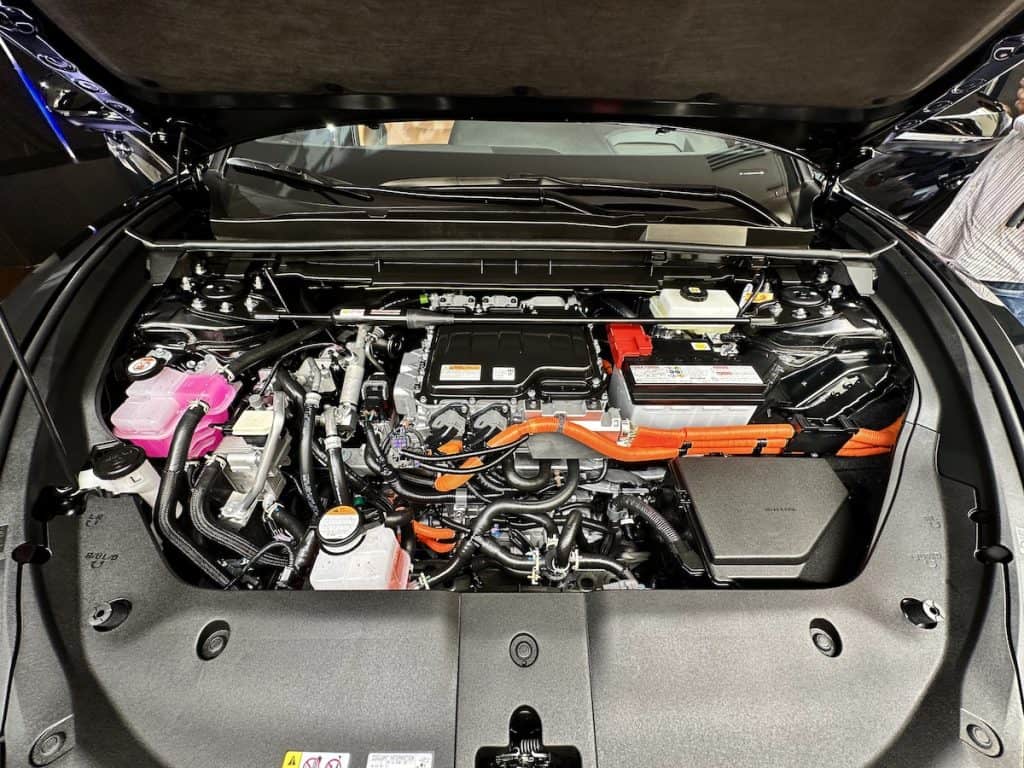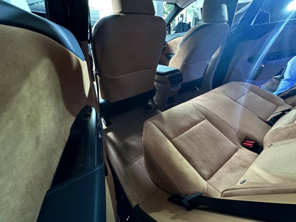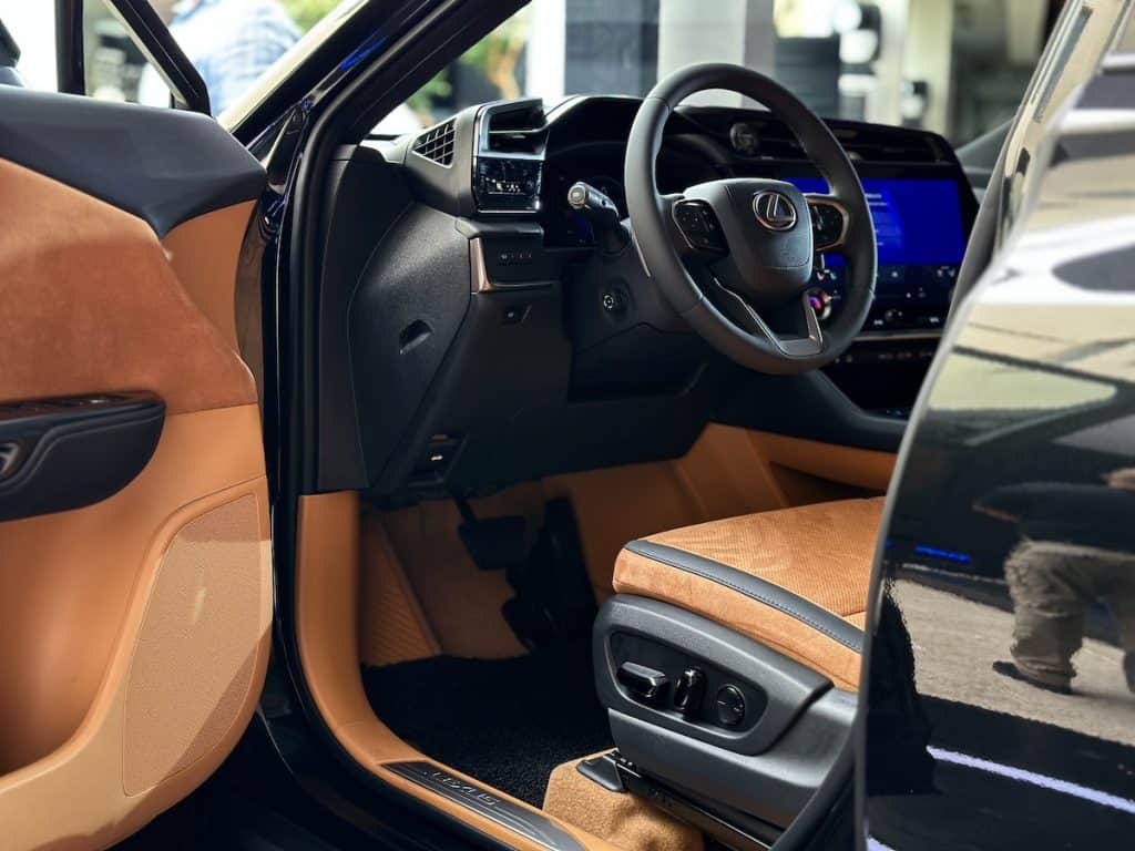 As we step inside, the RZ’s cabin is designed with three tri-tone schemes, which are predominantly in Grayscale, Hazel, and Orage (a shade of blue), giving the occupants a luxurious feeling. The front seats are 8-way power-adjustable and ventilated, while the second row is a 60:40 folding rear seat. The interior amenities include an automatic anti-glare mirror, a wireless charger, multi-color ambient illumination, Lexus Climate Concierge, a panoramic sunroof, automatic dual-zone air conditioning with humidity sensor, a radiant heater, and nanoeX.