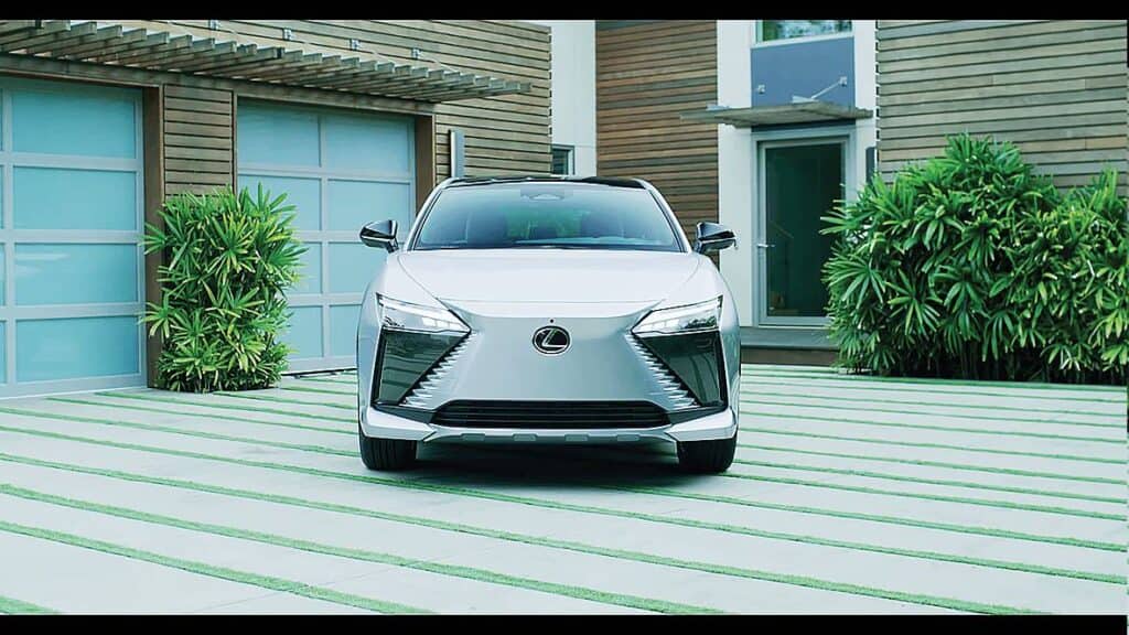 Featuring the “Next Chapter” of Lexus design, the Spindle Bodied Lexus RZ has short overhangs and a long wheelbase (2,850 mm) for its compact length (4,805 mm). Like the RX, the RZ’s grille is now more deeply integrated into the frontal design. And with BEVs requiring less cooling compared to a combustion engine vehicle, the familiar grille has been closed off and turned into a body-colored design. At each corner are standard dark metallic 20-inch alloy wheels with 235/50R20 tires, while at the back is an elongated LED lightbar with the “LEXUS” script on the back door panel.