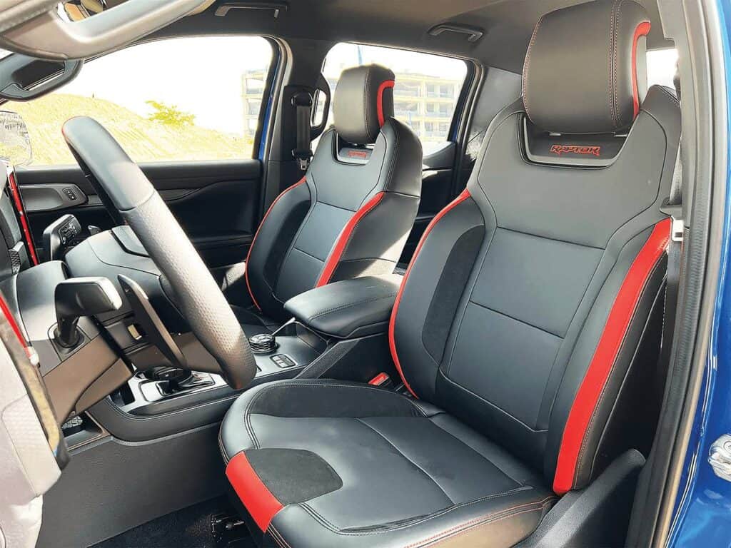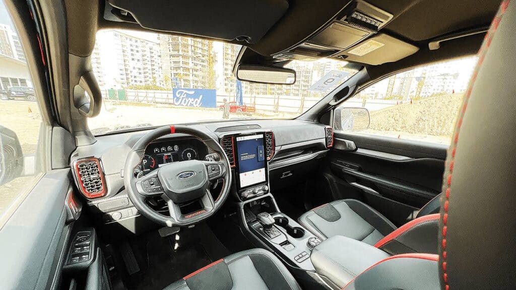If the exterior is very rugged, the cabin takes a bit of a turn and leans toward sportiness. The seats are bolstered well including the bench seat at the rear to keep occupants in place. Like the exterior, the cabin of the Ranger Raptor follows that of the normal Ranger so it’s not surprising to see the 12-inch portrait touchscreen here. What’s unique to the Raptor are the hefty paddle shifters, bigger 12-inch digital gauge cluster, Raptor branding, and splashes of orange on the panels and seats.