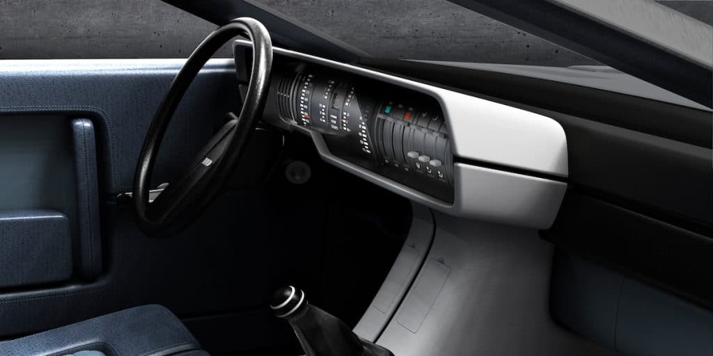 Inside, the car exudes a unique charm with its unconventional single-spoke steering wheel, two-tone slim-line bucket seats, and vertical instruments that deviate from traditional round dials.