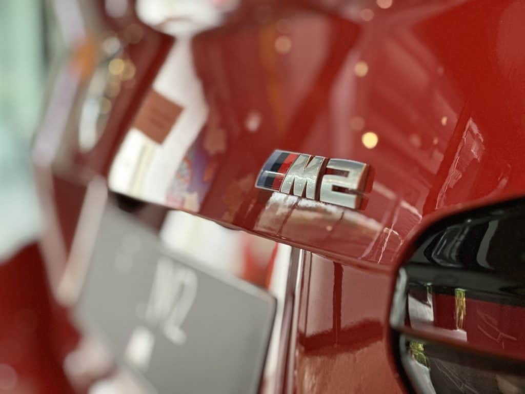 Riding on 19-inch M alloy wheels in the front and 20-inch M alloy wheels in the rear, the M2 has an imposing presence on the road. The high-gloss black outline for its windows, known as M Shadowline, adds a touch of sophistication.