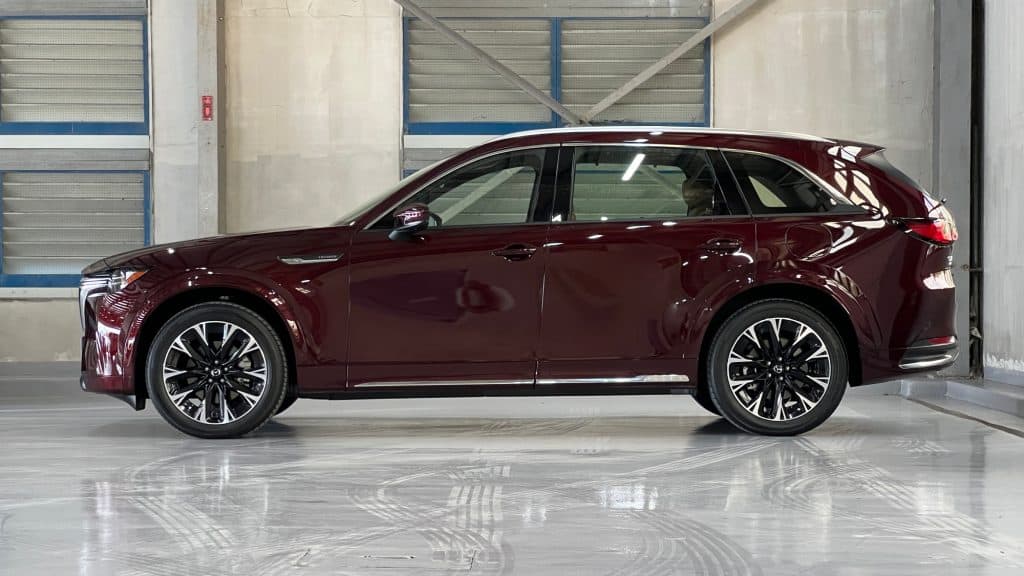 An 8-speed automatic transmission sends power to all four wheels via the Rear Biased i-ACTIV All-Wheel Drive. It has a 10-front/90-rear default bias that gives the CX-90 a rear-wheel drive feel and 50/50 weight distribution. This is further aided by the Kinematic Posture Control that gives stability when cornering by braking the inner wheels resulting in less body roll. There’s also Mi-DRIVE modes that adjusts the engine, brakes, transmission, and drivetrain to suit your current driving condition.