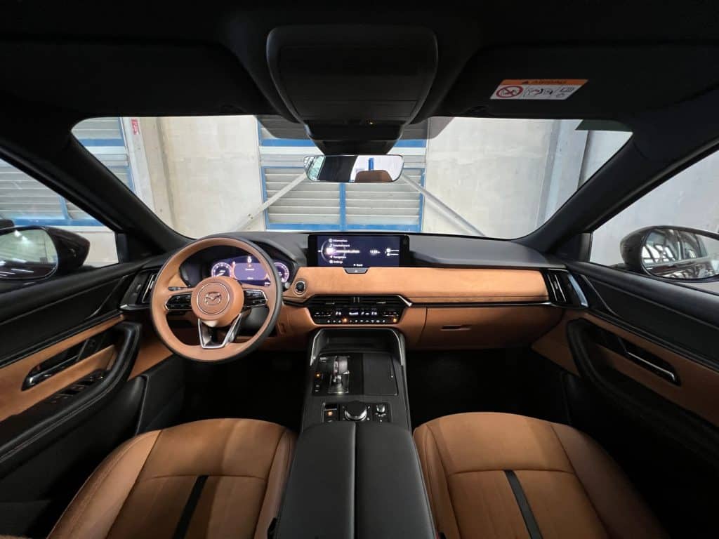 The CX-9 is already a sleek beast but Mazda’s designers still found ways to make it better. They gave the CX-90 a larger greenhouse, flattened the front face, and shortened the front overhang while also increasing the rear overhang. They then increased the wheelbase and moved the center of gravity rearward, creating a longer hood. This all resulted in a brighter and more spacious cabin, while the cargo area received an additional 192L of space for the 8-seater variant and +220L of space for the 6-seater (compared to the CX-9) – and that is with the third row seats up.